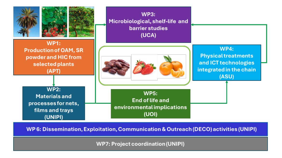 WP3, dedicated to microbiological, shelf-life and barrier properties studies, is aimed at testing the anti-microbial and gas barrier properties, as well as microbiological aspects related to the spoilage of the selected fruits in the developed packaging (shelf-life).